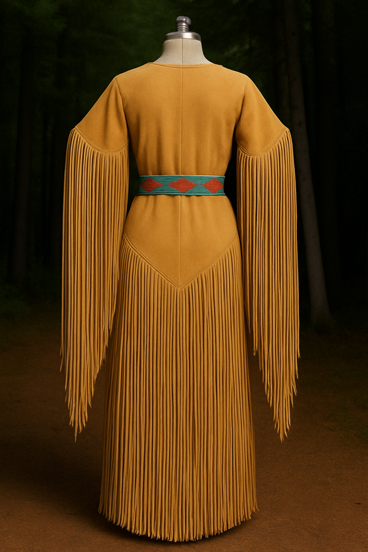 Handcrafted Suede Fringe Western Dress with Turquoise Beadwork Native American Inspired Leather Outfit