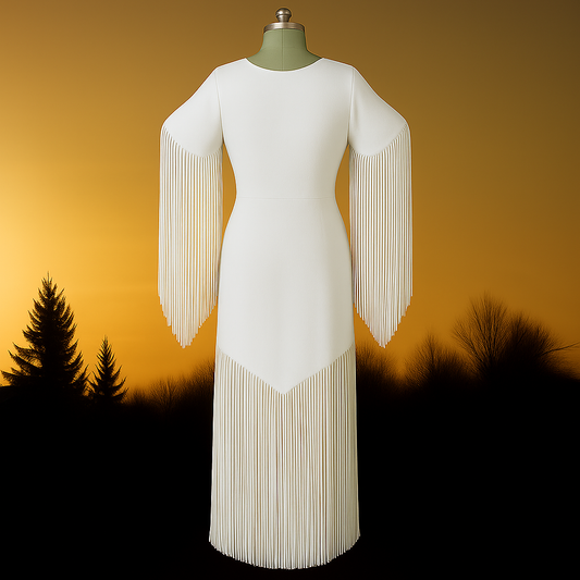 White Leather Fringe Western Dress: Turquoise Beaded Cowgirl Outfit