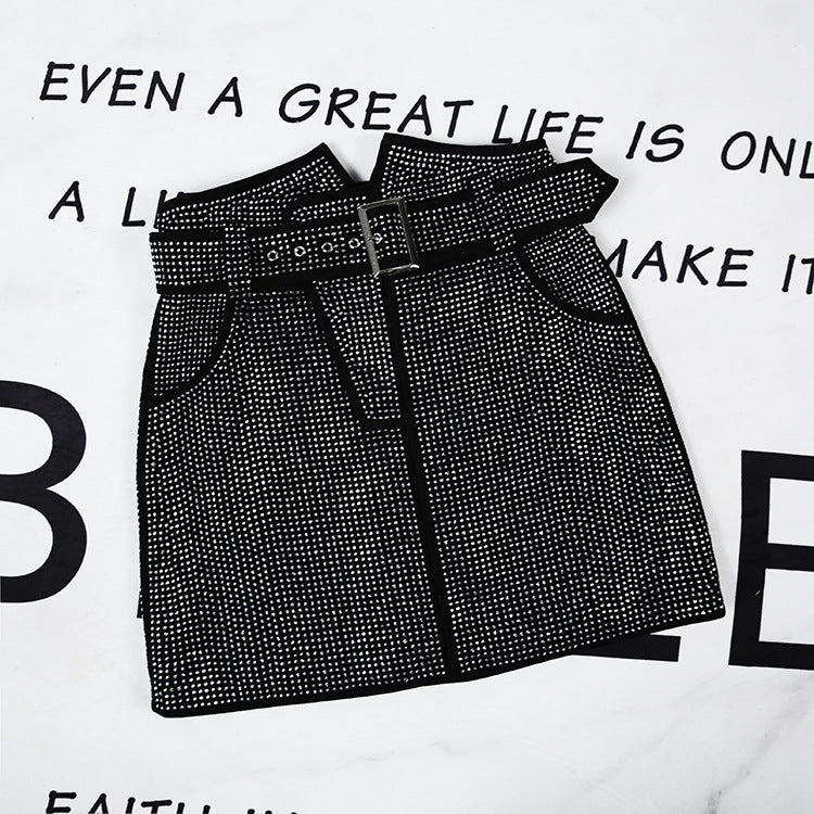 New Sheepskin Suede Hot Diamond Leather Belt Skirt