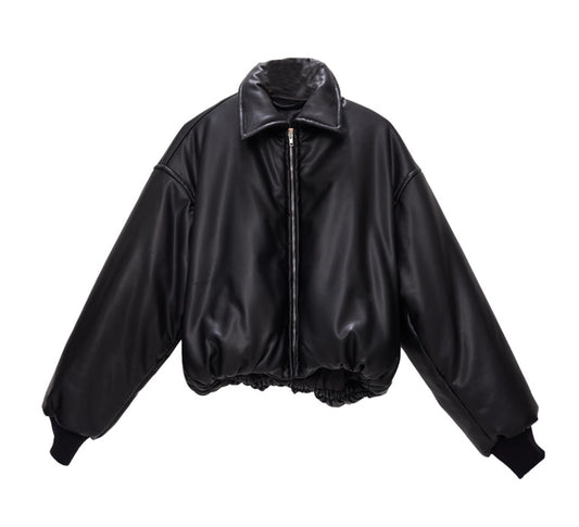 Handmade Real Leather Women's Short Drop-shoulder Leather Coat Jacket